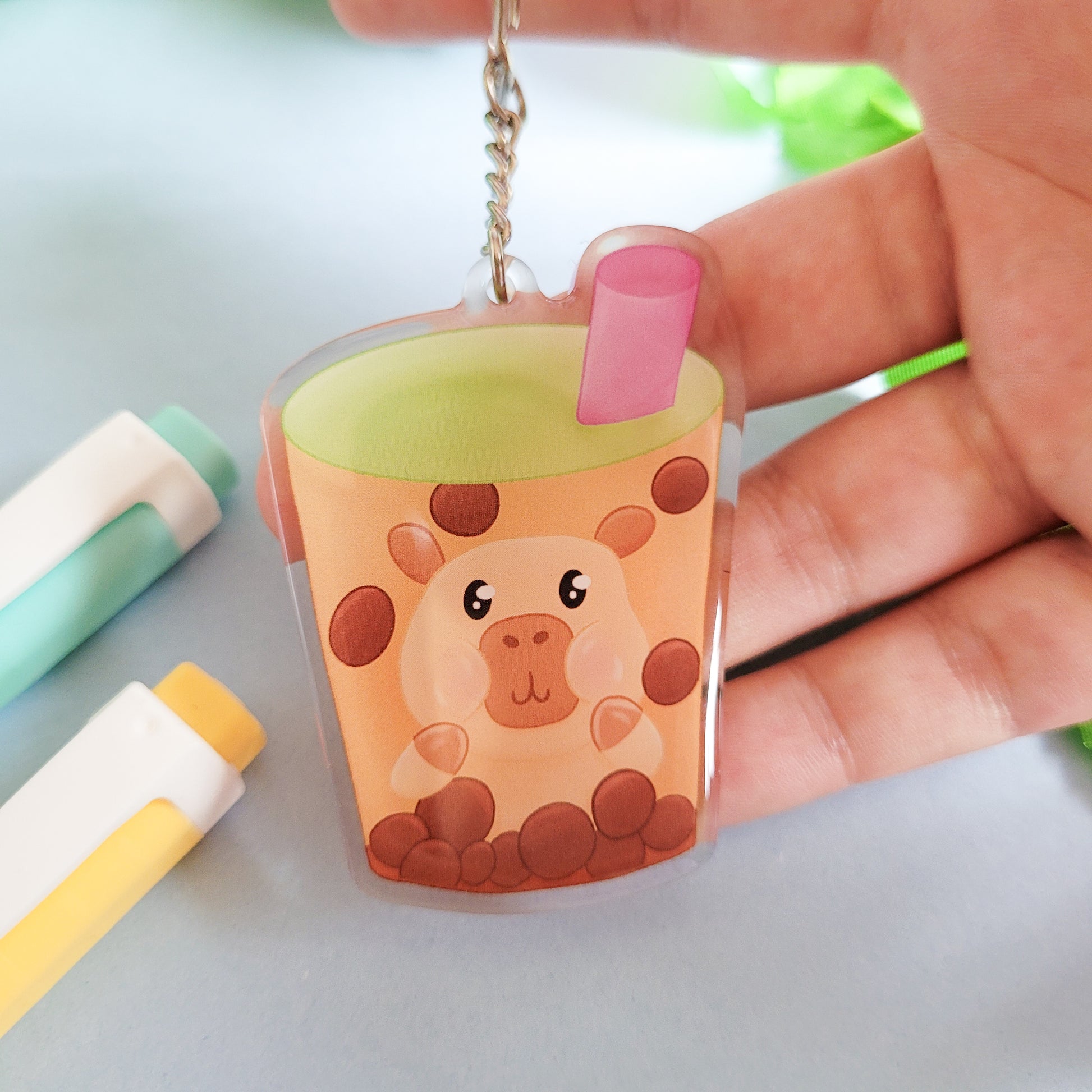 A cute capyboba keychain featuring an adorable caybara! This keychain is perfect for decorating your keys or a bag!