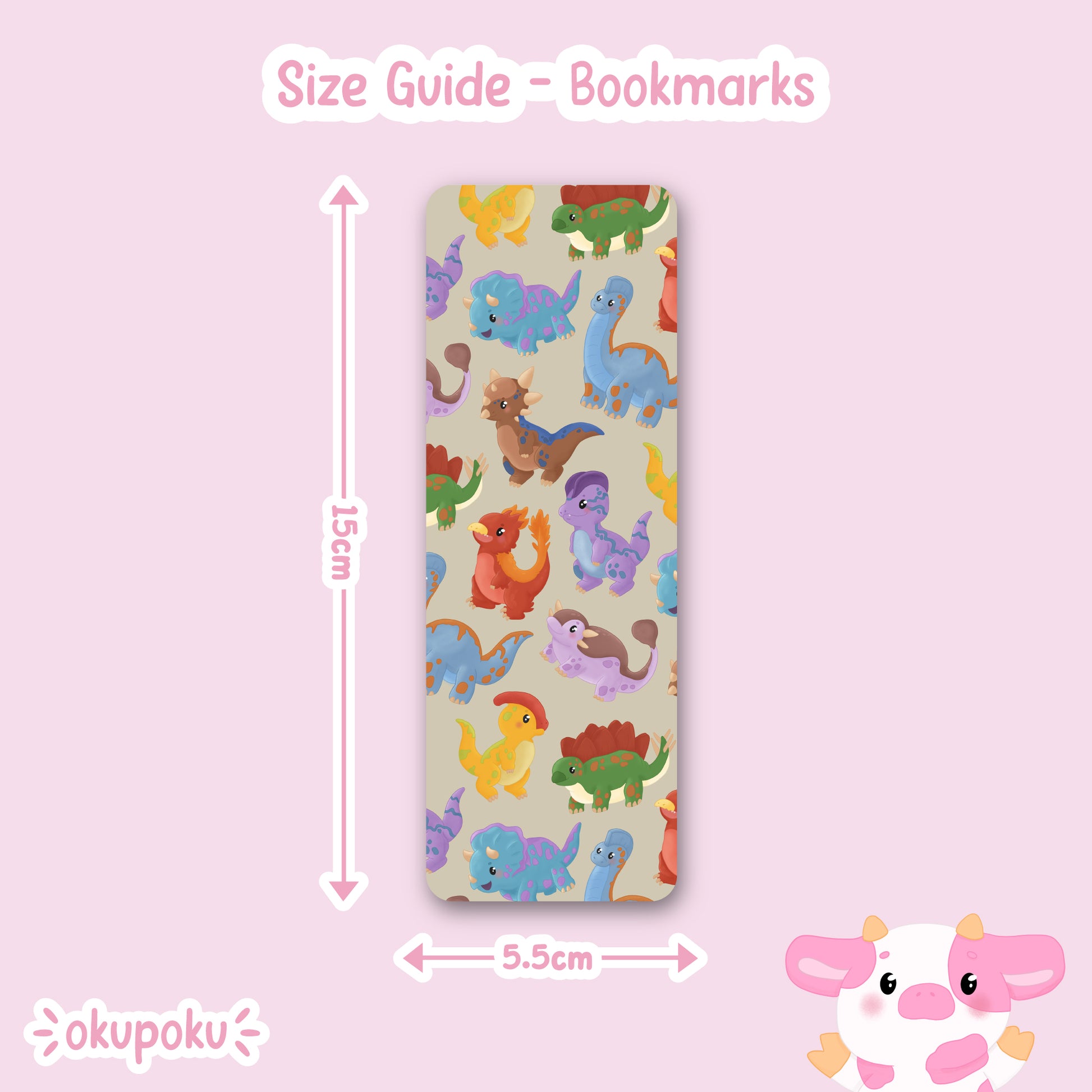 This cute dinosaur bookmark would be great for any dinosaur lover getting comfy with their favoruite book! This design features 8 cute dinosaurs: Velociraptor, Dilophosaurus, Triceratops, Brachiosaurus, Stygimoloch, Ankylosaurus, Parasaurolophus, and a Stegosaurus. These bookmarks are made out of high quality thick cardstock with rounded corners for a softer look.