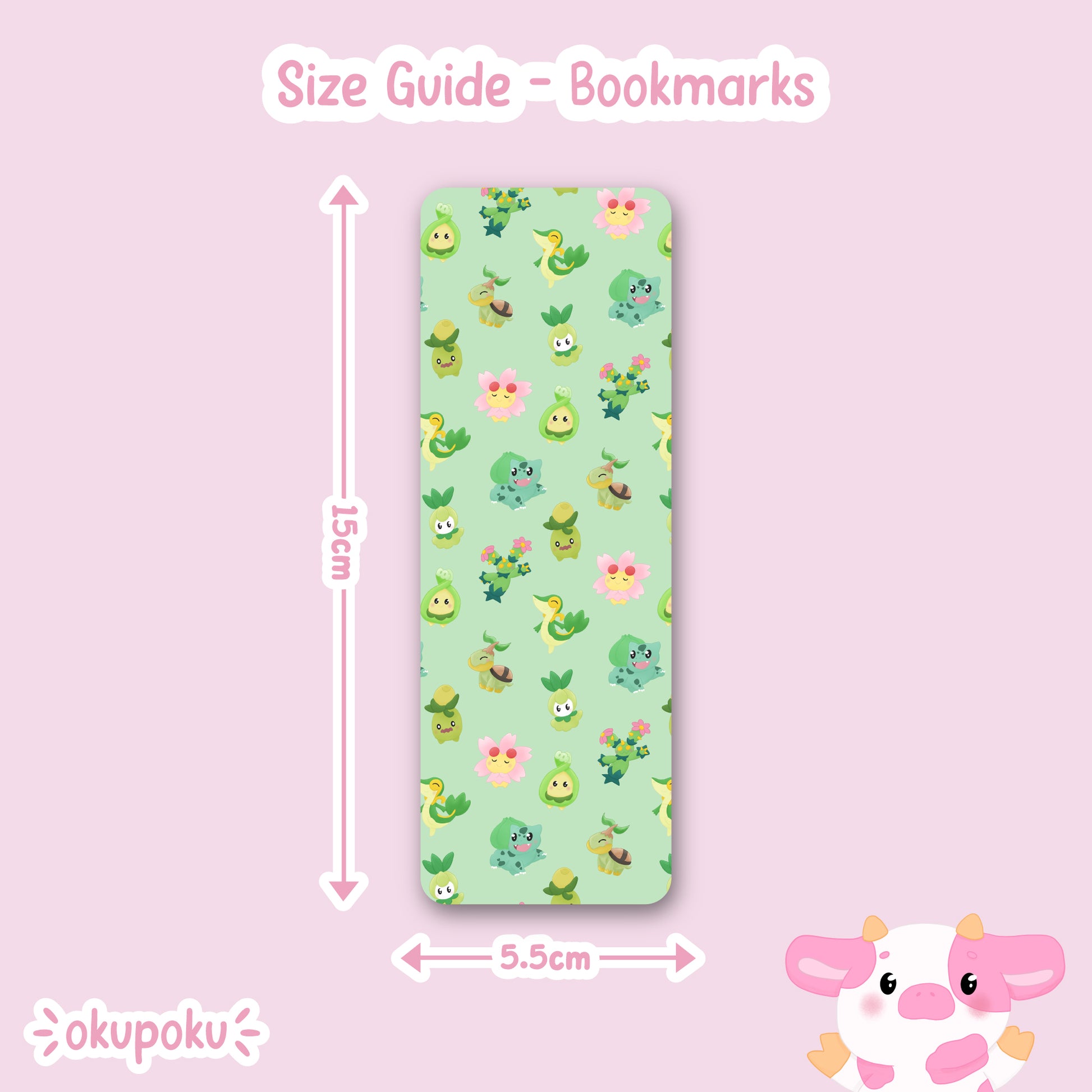 This grass type pokemon bookmark would be great for anyone getting comfy with their favourite book! This design features 8 different adorable grass type pokemon.