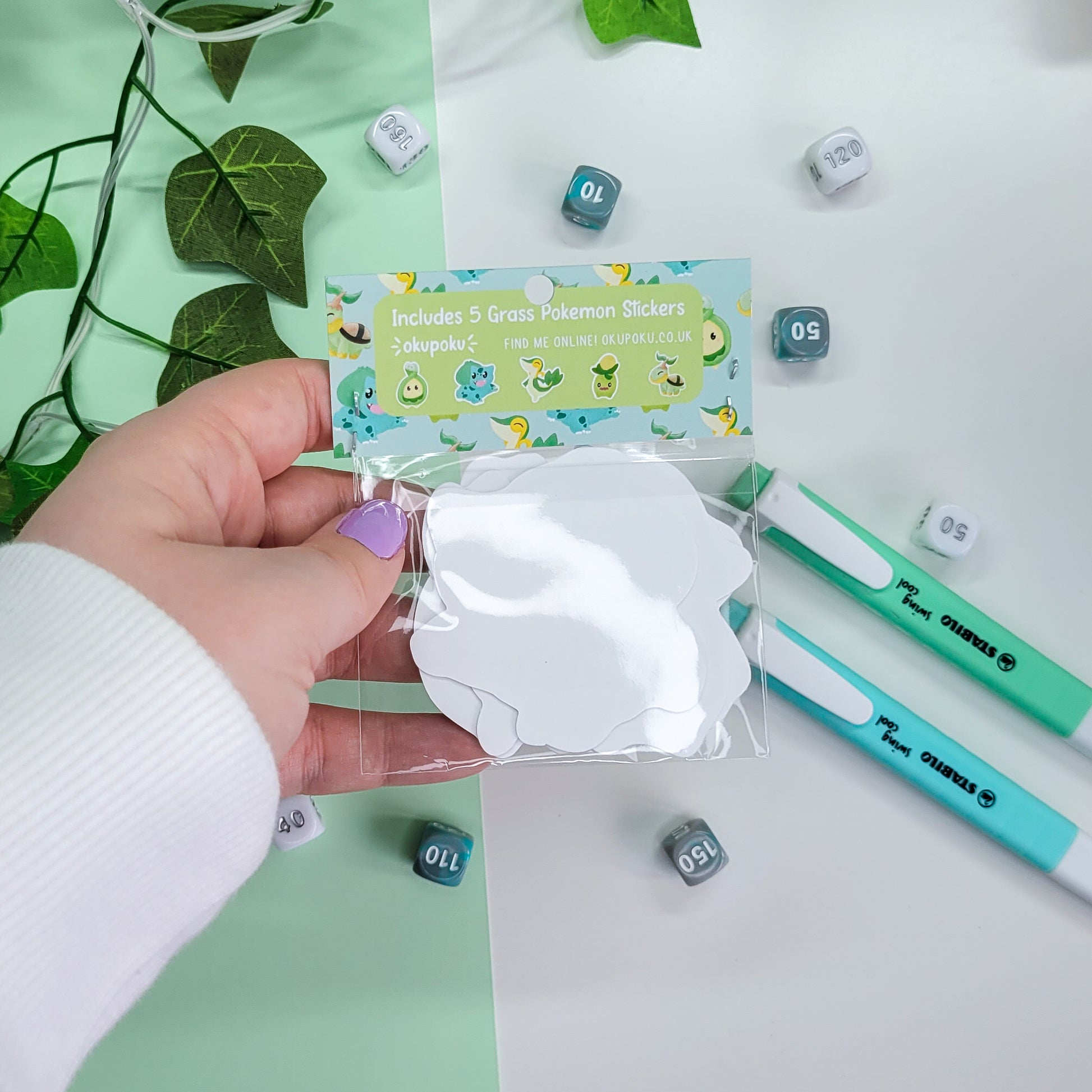 The perfect stickers for all the grass type pokemon lovers! This grass pokemon sticker pack includes 5 grass pokemon. These stickers are laminated with a holographic adhesive to make them have a beautiful effect in the sunlight! Great for using in a planner, on your notebook, or wherever you like!