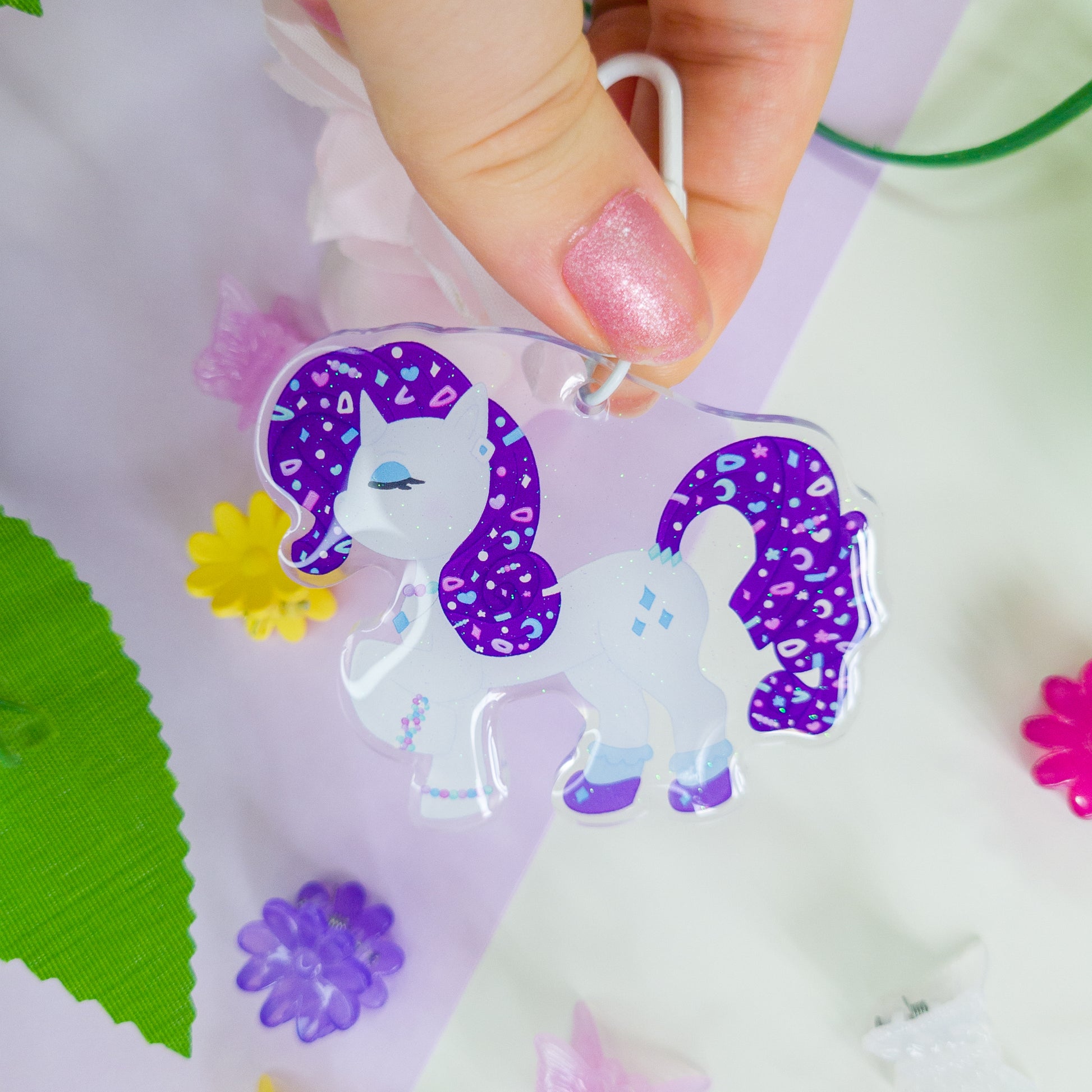 A cute keychain of Rarity from My Little Pony acryllic keychain! This keychain is perfect for decorating your keys or a bag! This keychain is only one of the cute My Little Pony Designs that I have created recently!