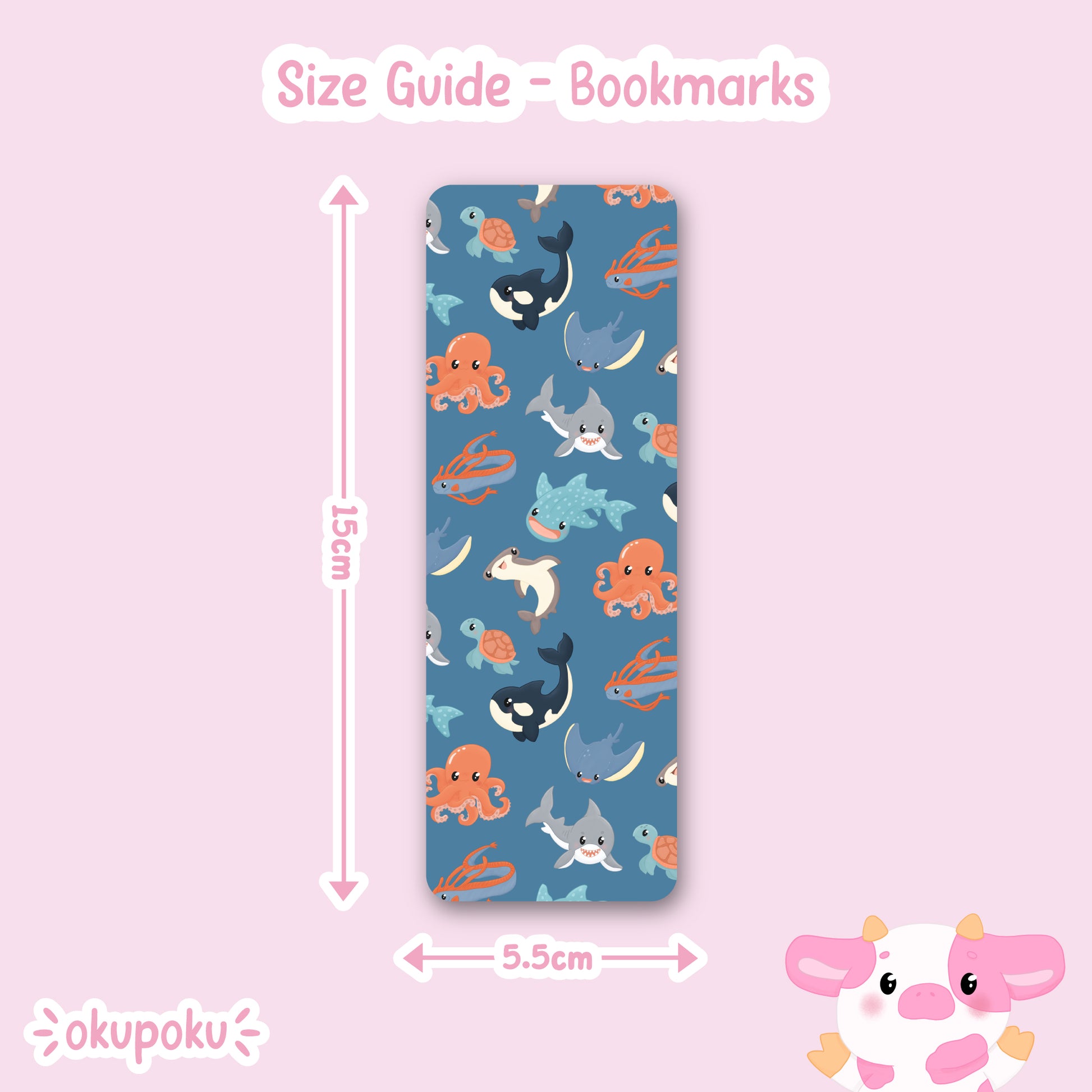 This cute underwater bookmark would be great for any ocean lover getting comfy with their favourite book! This design features 8 cute ocean buddies such as sharks, whales and an octopus.